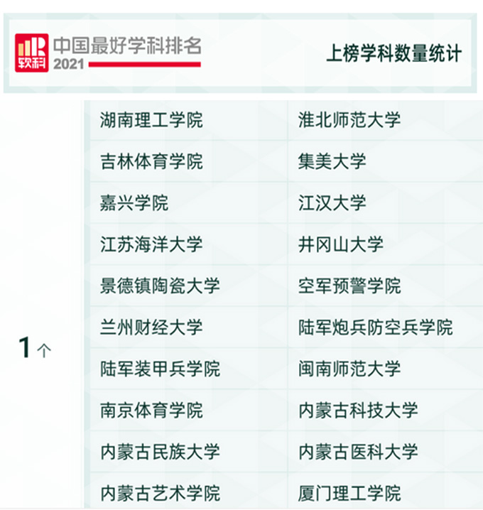 软科中国最好学科排名的指标体系包括人才培养、科研项目、获奖成果、学术论文、学术人才五大指标类别,下设17个指标维度,共计50余项反映学科竞争力的客观量化指标,涉及百余项观测变量。软科中国最好学科排名榜单包括96个一级学科,各个学科排名的对象是在该一级学科设有学术性硕士研究生学位授权点的所有高校,发布的是在该学科排名前50%的高校。