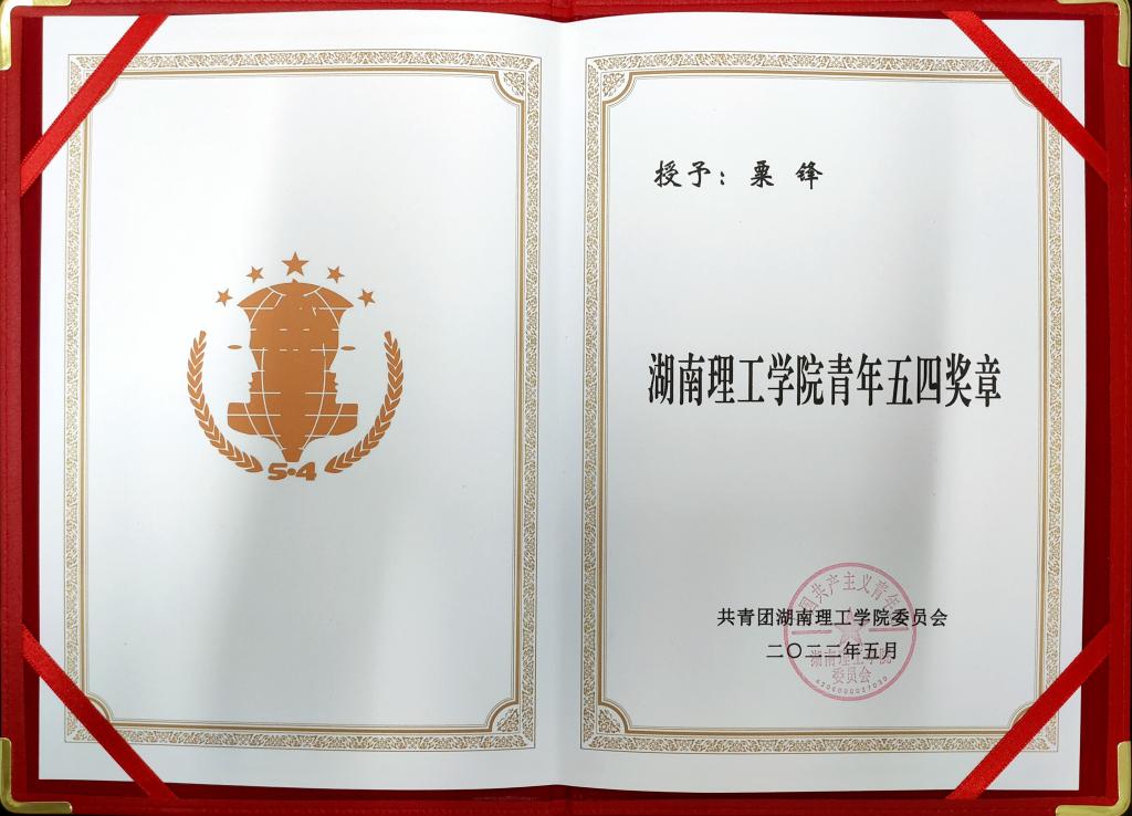 “五四”青年节到来之际,yl8cc永利官网青年教师粟锋和学生吴昊楠荣获学校“青年五四奖章”称号。