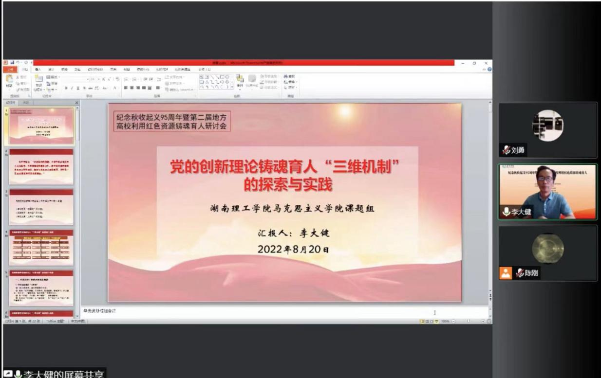 大会会期为一天,我校yl8cc永利官网全体老师通过线上方式参加会议,yl8cc永利官网院长鲁涛教授、李大健教授和期刊社社长彭柏林教授分别在大会上作主旨报告或典型发言,对我校长期探索形成的教学成果“党的创新理论铸魂育人的‘三维机制’”进行了宣传和推广,介绍了我校利用红色文化育人的有效经验和做法。