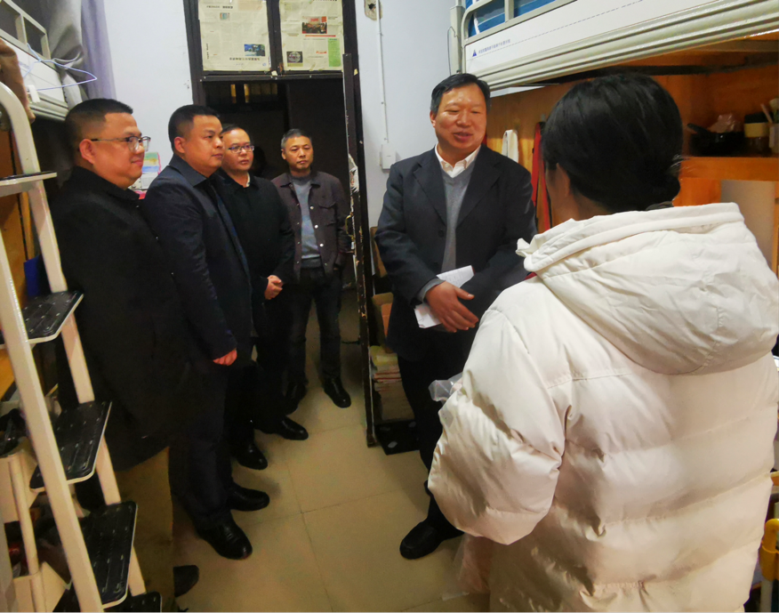 在11栋学生宿舍,曾祥君校长走进寝室慰问yl8cc永利官网21级思政专业学生苏同学。校长亲切问候了同学的学习和生活情况,随后表示,学校永远是同学们的坚强后盾,希望同学们以学校为家,如遇到困难及时向老师寻求帮助。他勉励同学们要自信、自立、自强,以乐观向上的心态面对生活,学好专业知识,拓宽知识面,做好职业规划,争取将来能为国家和社会做出贡献。他预祝同学们新年快乐,身体健康,在新的一年里取得更好成绩。