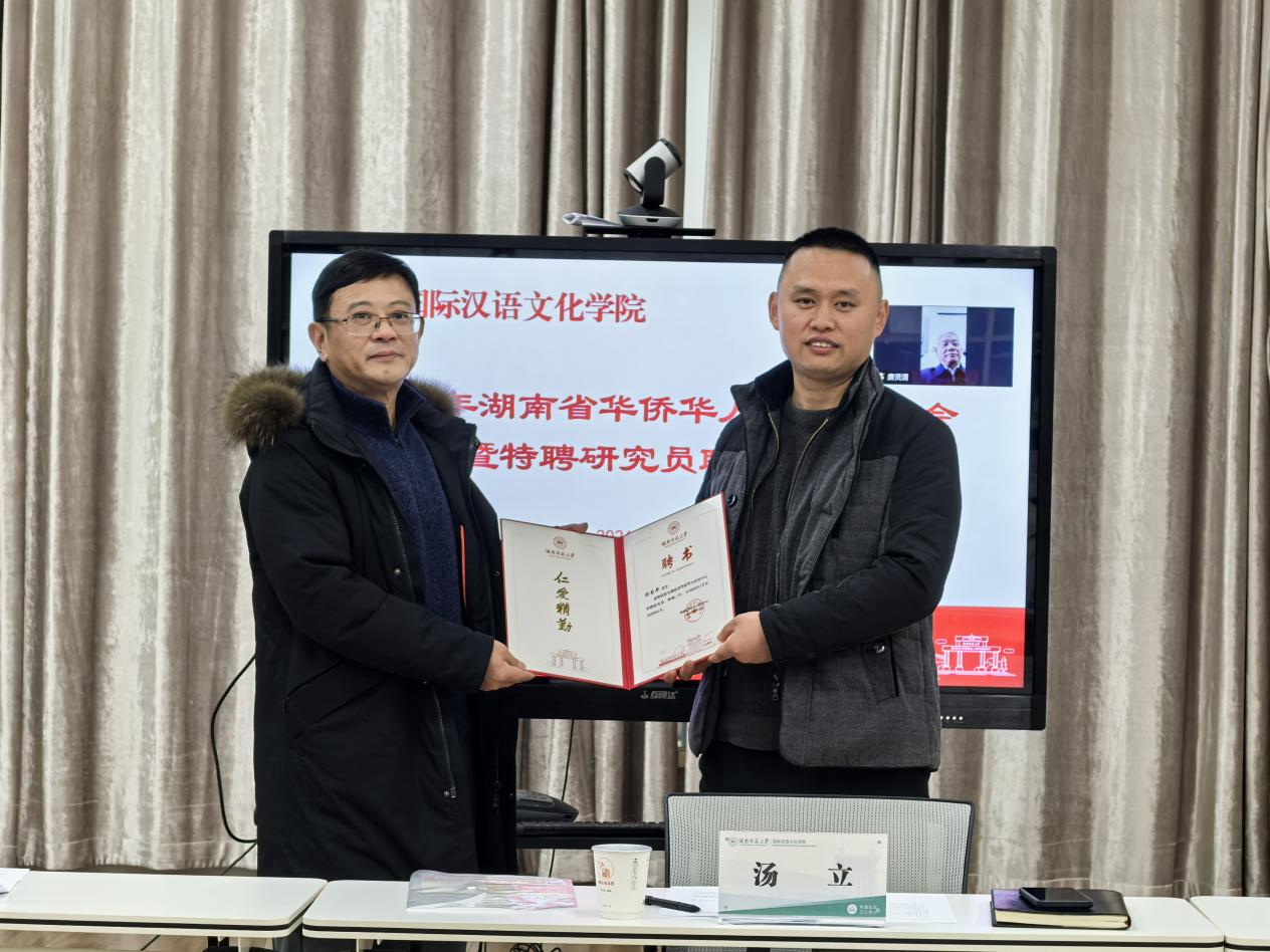 1月22日,2026年湖南省华侨华人研究座谈会暨特聘研究员聘任仪式在湖南师范大学田家炳教育书院举行。yl8cc永利官网刘龙华博士受聘为该研究中心特聘研究员。