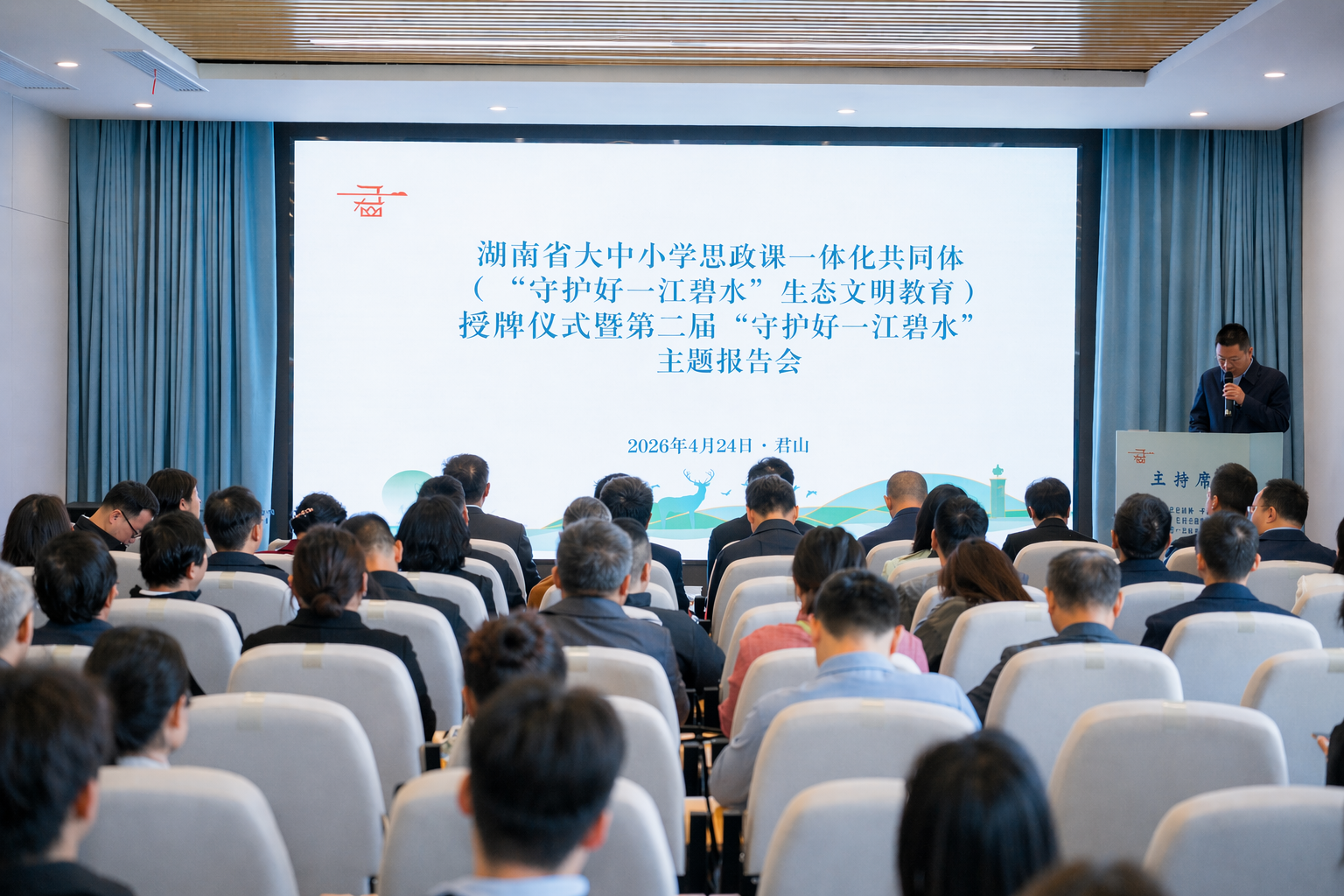 4月24日,湖南省大中小学思政课一体化共同体(“yl8cc永利官网”生态文明教育)授牌仪式暨第二届“yl8cc永利官网”主题报告会在岳阳市君山区“yl8cc永利官网”展陈馆举行。岳阳市人民政府副市长张世愚,学校党委书记张国云出席。岳阳市委宣传部副部长余友安,岳阳市教育体育局党组书记、局长尤庆学,君山区委书记雷欣,区委副书记、区长陈淼参加。