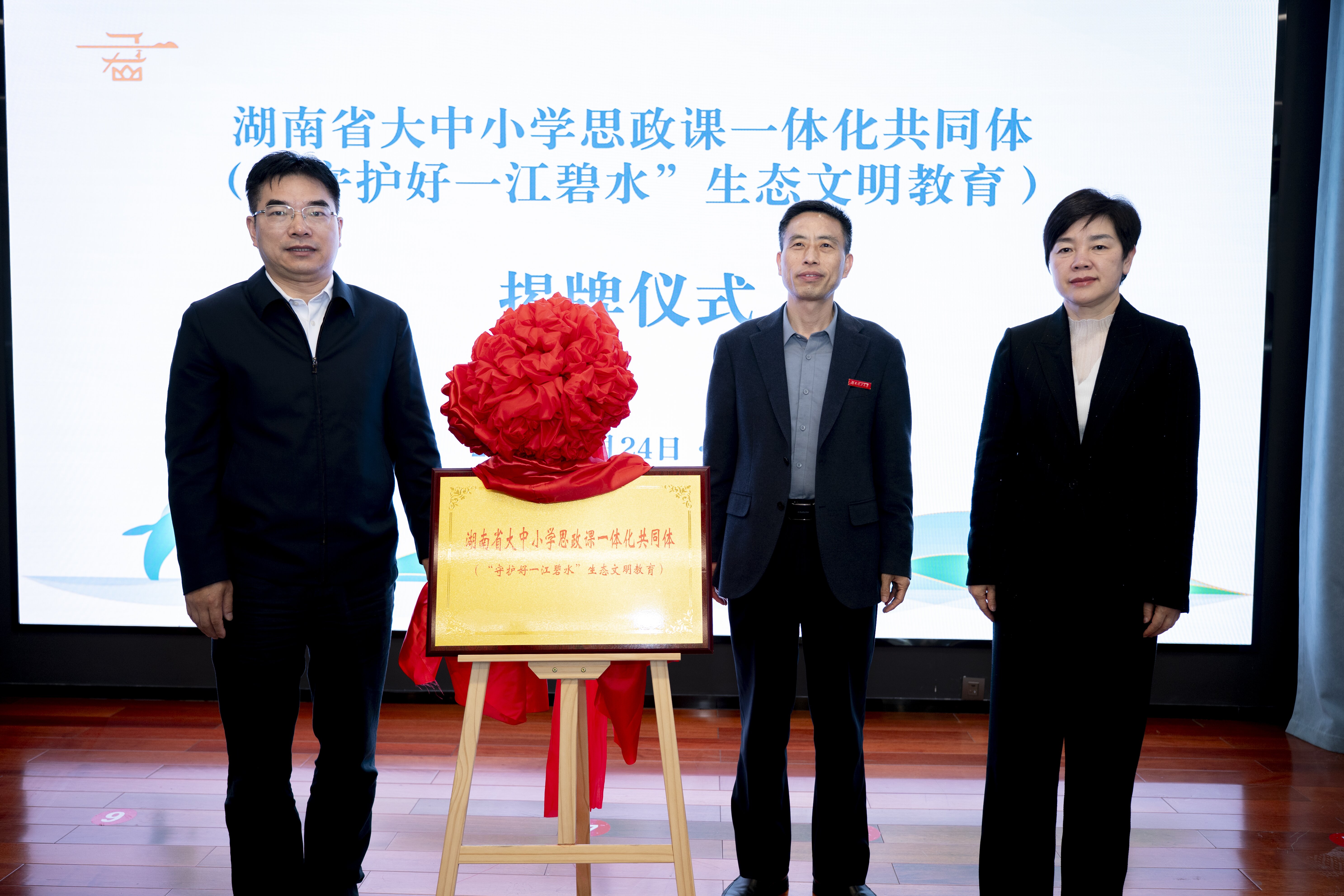 张世愚为湖南省大中小学思政课一体化共同体揭牌,校党委书记张国云和君山区委书记雷欣共同见证