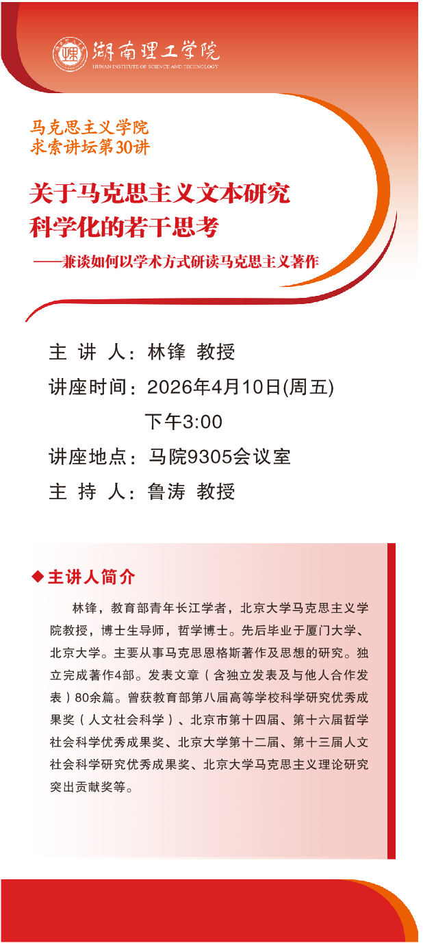 yl8cc永利官网求索讲坛第30讲预告:关于马克思主义文本研究科学化的若干思考--兼谈如何以学术方式研读马克思主义著作