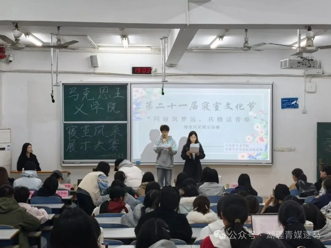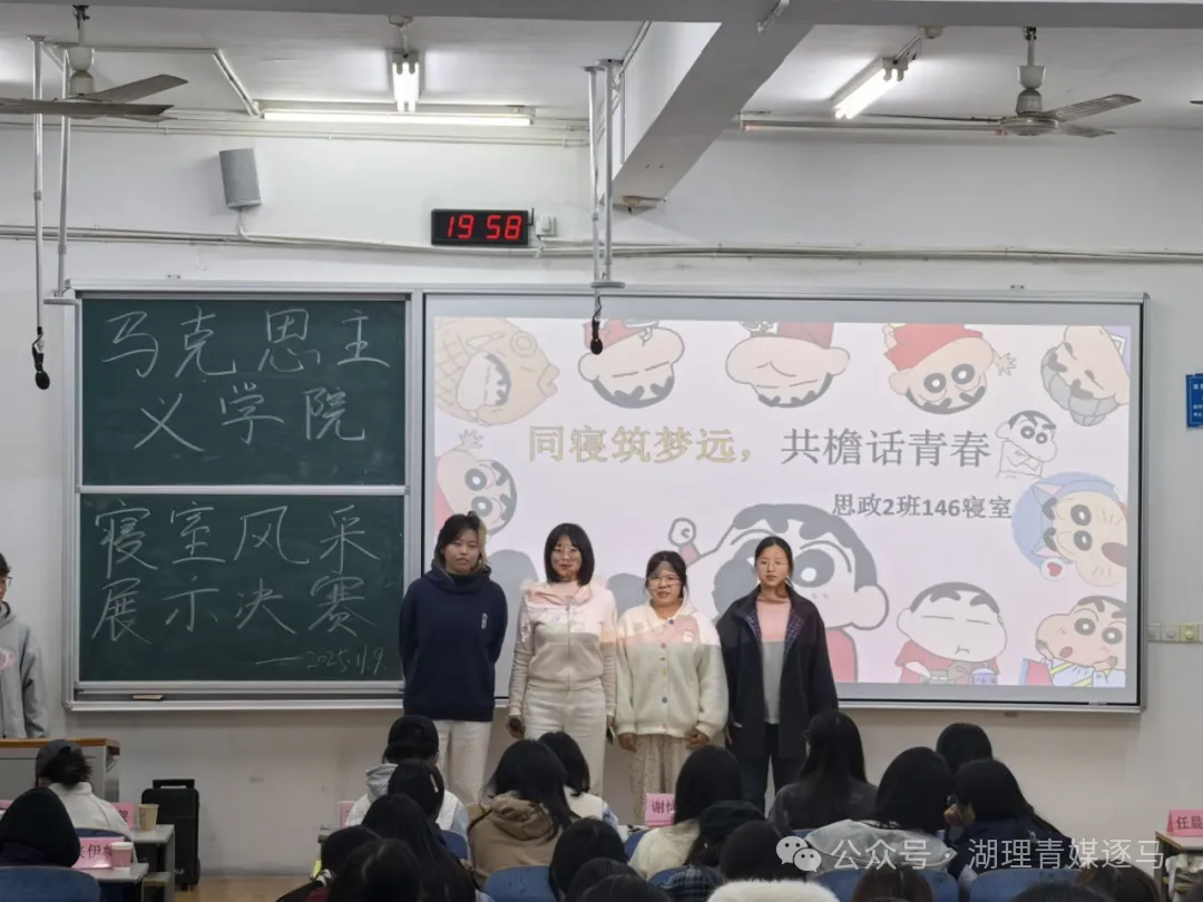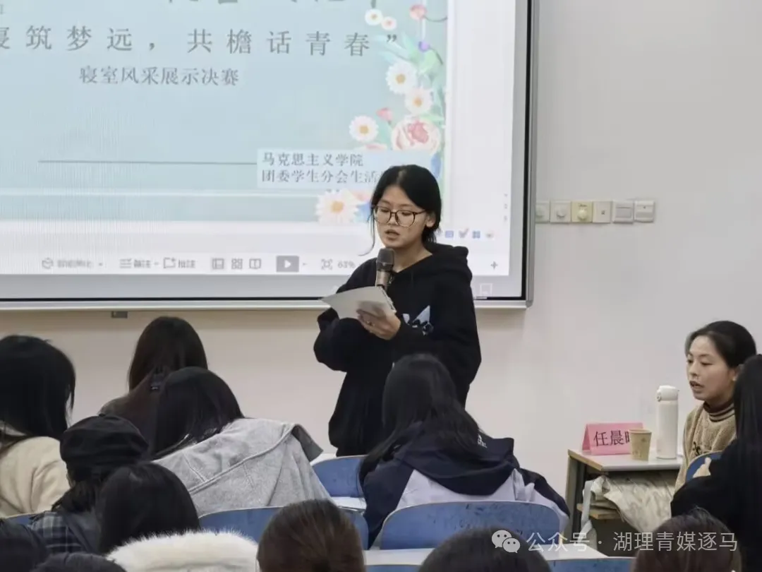 比赛伊始,主持人介绍了本次比赛的详细规则及具体流程,各参赛寝室按赛前抽签顺序依次进行展示。部分寝室巧妙将“蜡笔小新”、“樱桃小丸子”等动漫元素融入PPT,向评委和观众们展示独特寝室风采,诠释平凡生活里的纯真美好,引发全场强烈共鸣。